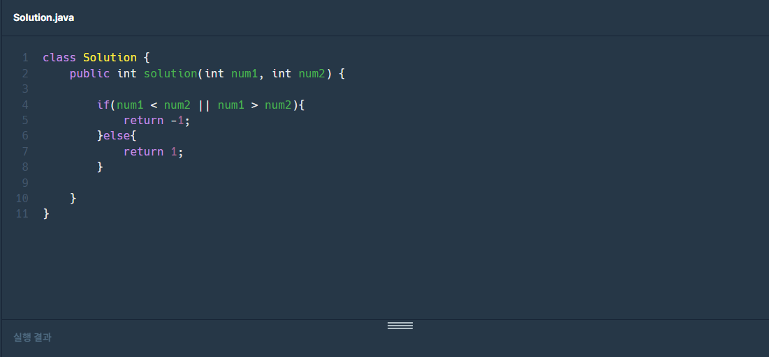 return answer = (num1 > num2) ? -1 : (num1 == num2) ? 1 : -1;
