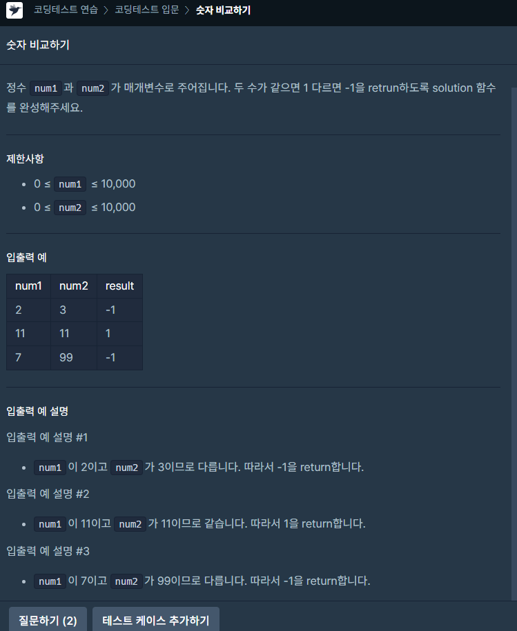 | programmers 코딩테스트 lv 0 두 수의 차 (0) | 2022.12.03 |